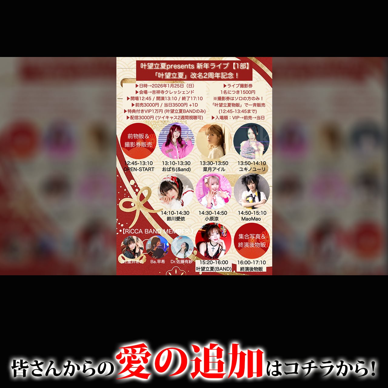 出演:叶望立夏(BAND) / MaoMao / 小原涼 / 鈴川愛依 / ユキノユーリ / 菜月アイル / おばち(&and)