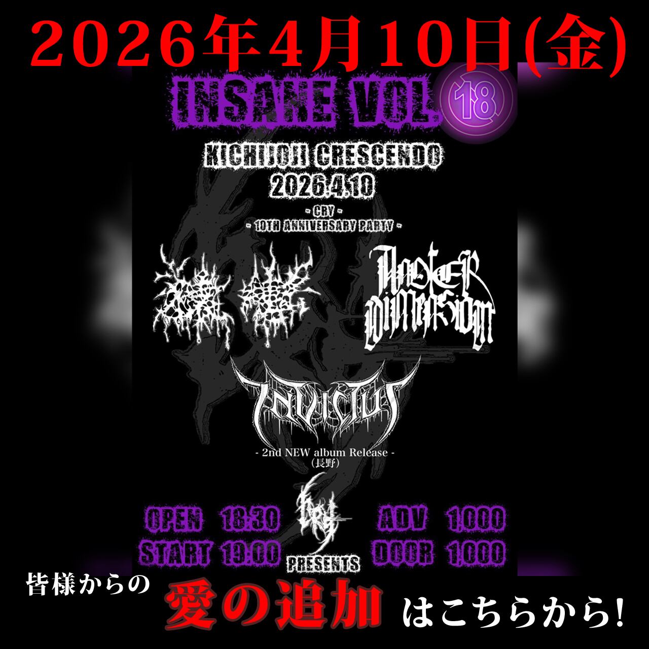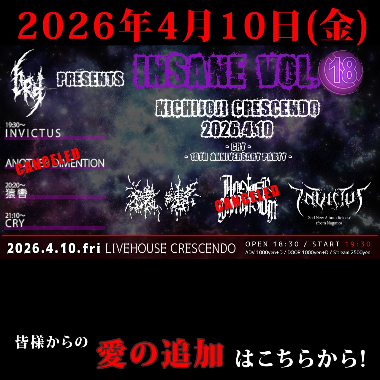 「CRY Presents INSANE vol.18 -CRY 10th Anniversary Party-」