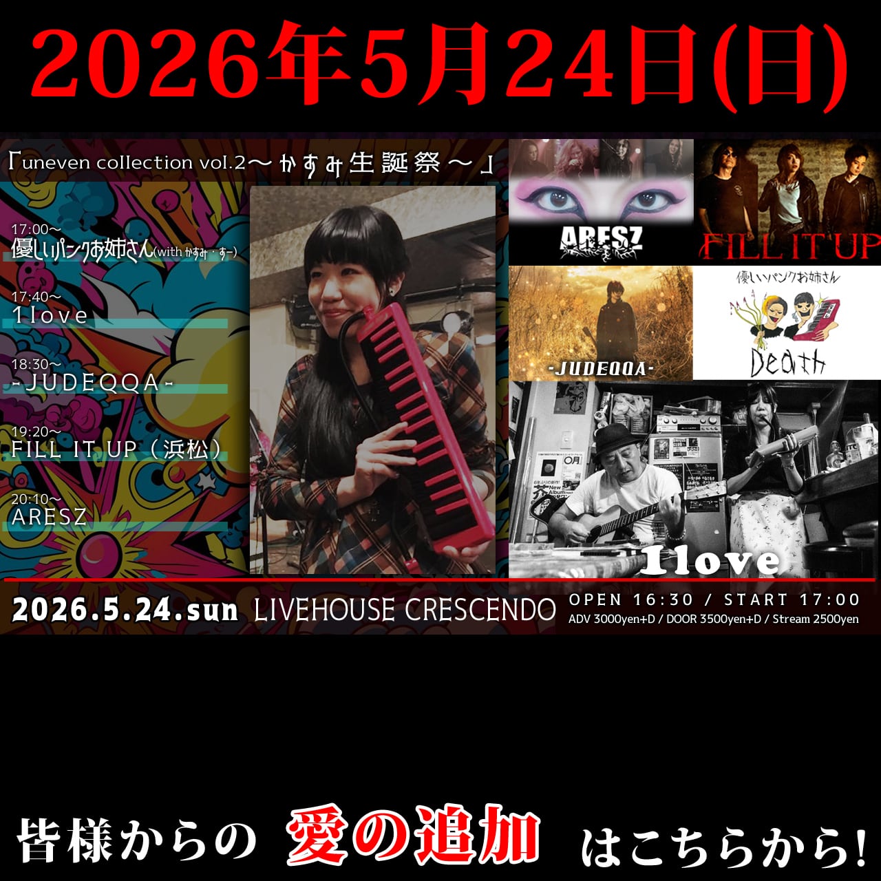 【愛の支援】ARESZ / FILL IT UP(浜松) / -JUDEQQA- / 1love / 優しいパンクお姉さん(with かすみ・すー) (5/24)